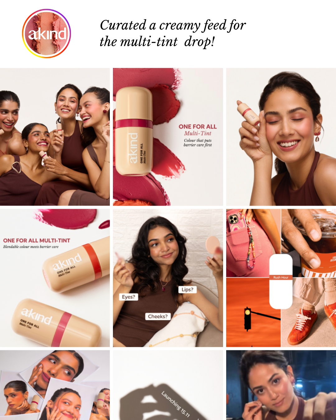 Our photography and videography were shaped around the distinct storytelling needs of Akind’s skincare and makeup categories, while maintaining a consistent visual language across the feed.